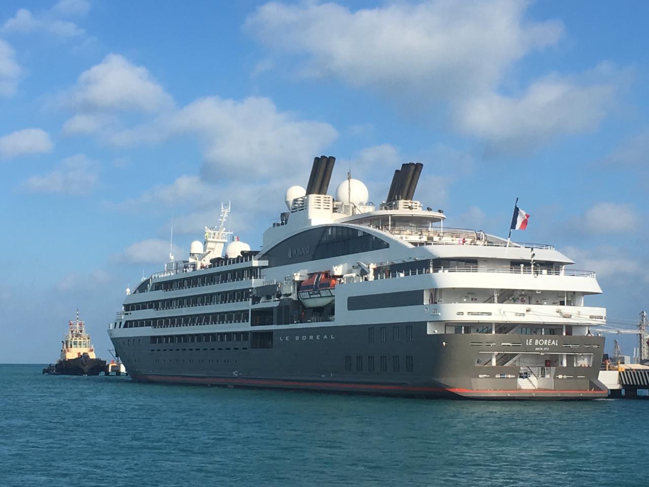 El Le Boreal es un crucero dirigido al segmento de mercado de lujo y realiza este año su primer arribo del itinerario programado a Progreso, trasladando en esta ocasión a 220 pasajeros y 143 tripulantes.