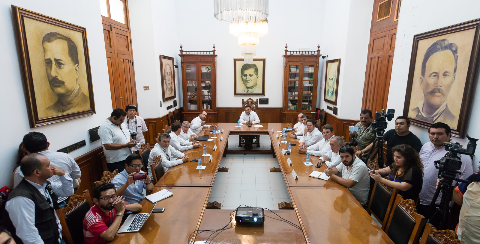 Asistieron, los dirigentes del Consejo Coordinador Empresarial (CCE), Michel Salum Francis; de las Cámaras Nacionales de la Industria de Desarrollo y Promoción de la Vivienda (Canadevi), Armando Valencia Castillo, y de la Industria de Transformación (Canacintra) en Yucatán, Juan Manuel Ponce Díaz.